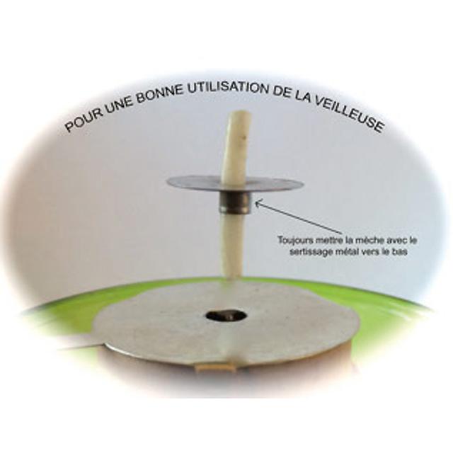 Espera unos instantes a que la mecha quede bien empapada en aceite, luego enciéndela, evitando tocar el flotador con la llama del fósforo para no desequilibrarla. La mecha ahora puede arder durante al menos 24 horas...