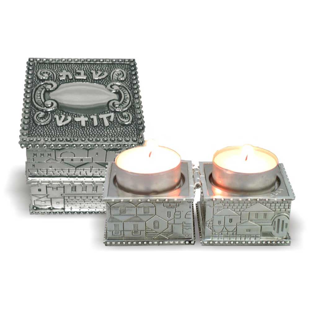 Vous prévoyez de passer Shabbat ou des fêtes juives chez des amis ou de la famille ? Ne partez pas sans cet objet muni de 2 bougeoirs avec un couvercle refermable. Une création originale inspirée par la Vieille Ville de Jérusalem.