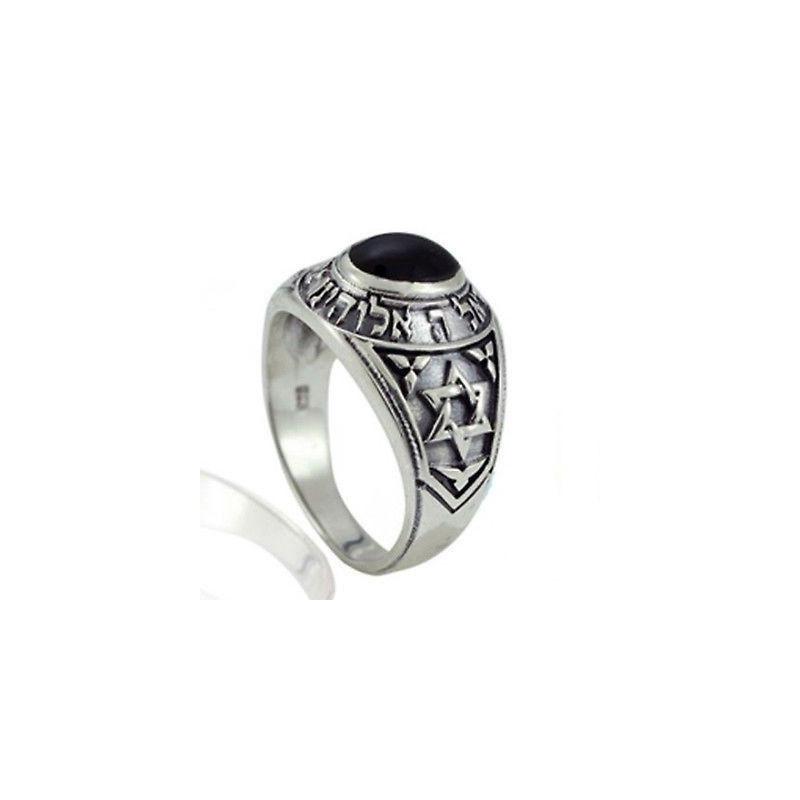Ring Onyx and Silver Shema Israel