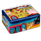 This pretty jewelry box is made of wood hand painted by the artist Emanuel. It is decorated with the magnificent landscapes of the holy city of Jerusalem.