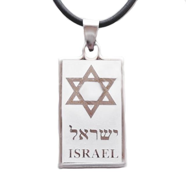 Pretty military plate necklace , composed of a rubber cord and a pendant with the inscriptions in Hebrew: " Israel " accompanied by a Star of David.