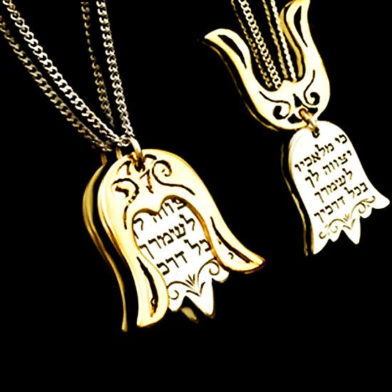 The second part, made from 925 sterling silver , is engraved in Hebrew with the Psalm (91:11) “For he will give to his angels for you, to keep you in all your ways”. This collar is meant to give you protection wherever you go.
