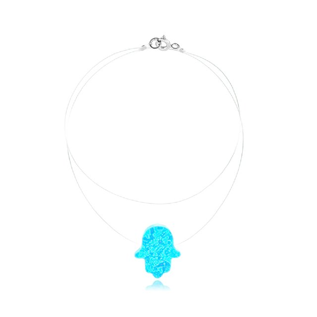Sky blue opaline Hamsa pendant on invisible thread