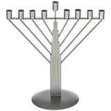 Cette Chanoukia en métal issue de la gamme des objets pour Fêtes Juives au design selon la coutume habad,