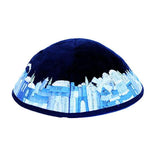 Embroidered velvet yarmulke - "Jerusalem" blue
