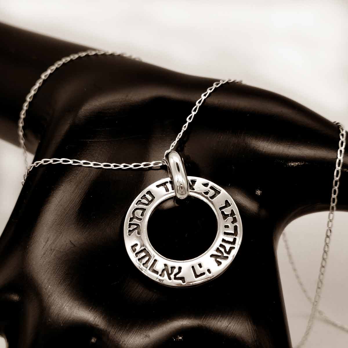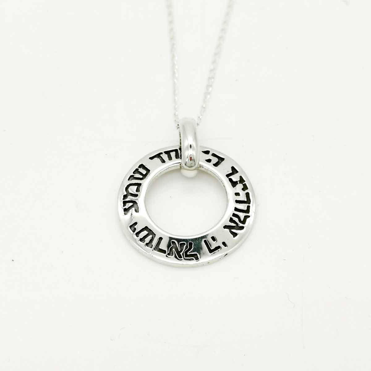 Circular medallion where is written The Shema Israel Prayer - Hear Israel, the Lord our God is One - Shema Israel Adonai Eloheinu Adonai Echad