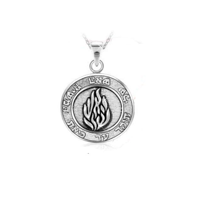 On this silver medallion is an engraving of a flame accompanied by the inscription: “My flame will burn forever. It won't go out! My Flame will burn until the arrival of Mashiach! in Hebrew.