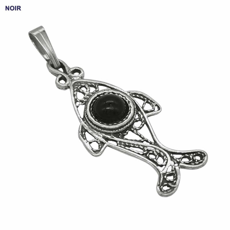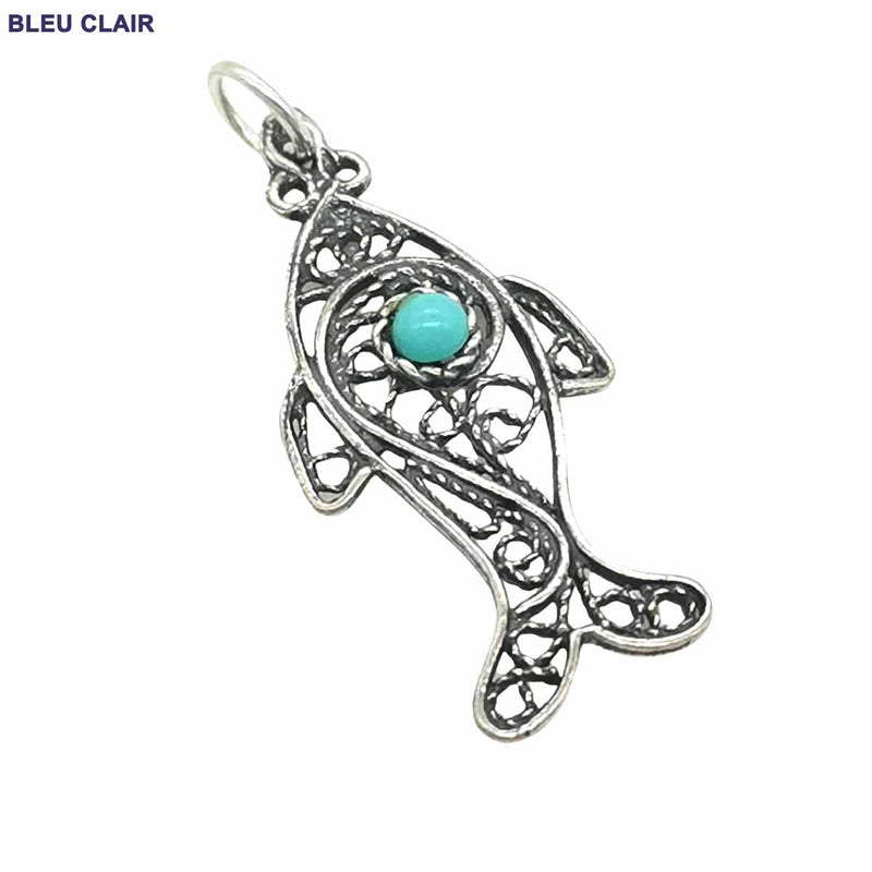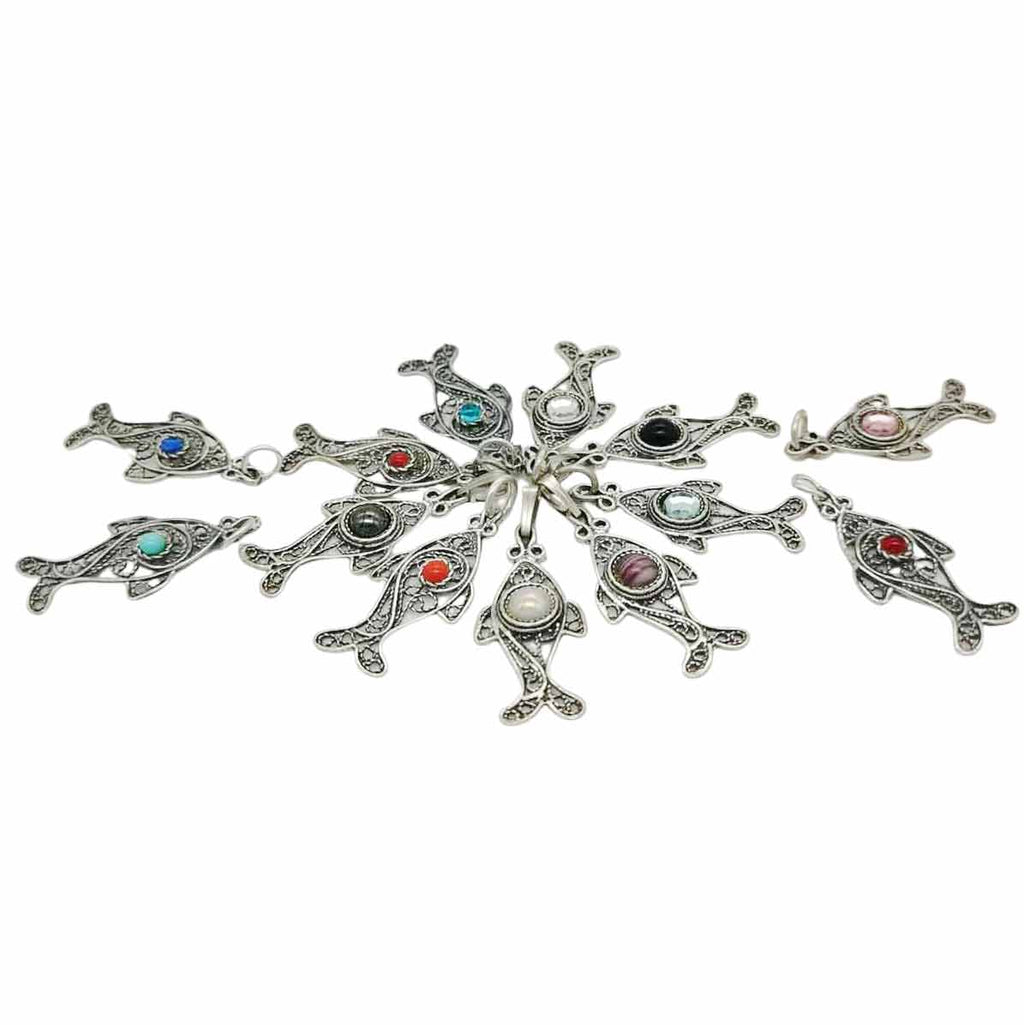 Choose your favorite stone color and wear it, and your Happy Silver Fish Pendant, will catch the eye while protecting you.
