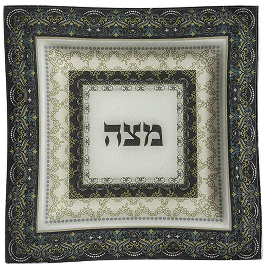 Stunning Matzah tray , made of square shaped glass . It is inscribed in the center of the plate “Matsa” in Hebrew.