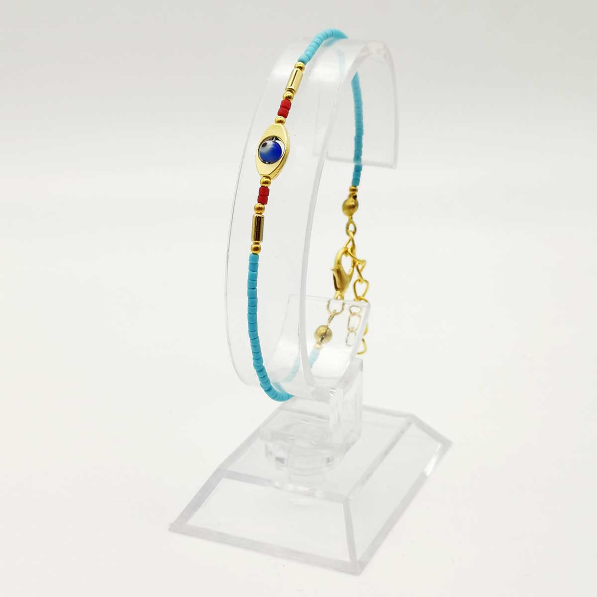 Depuis de nombreux siècles, on retrouve le symbole de l'œil en Méditerranée et plus particulièrement en Turquie. Fabriqué en verre bleu, il est utilisé sous forme de bijoux mais aussi de décoration dans les maisons. Également appelé “Nazar Boncuk” ou "œil grec” son rôle principal est de protéger de la malédiction du mauvais œil qui est provoqué par des regards envieux. Le symbole a beaucoup évolué au fil du temps et fait entièrement partie de la culture populaire juive. Il est désormais proposé par les artisans bijoutiers sous différentes formes et couleurs. Ce qui en fait un véritable accessoire de mode qui peut se porter sous forme de boucles d'oreilles, de collier ou de bracelet.