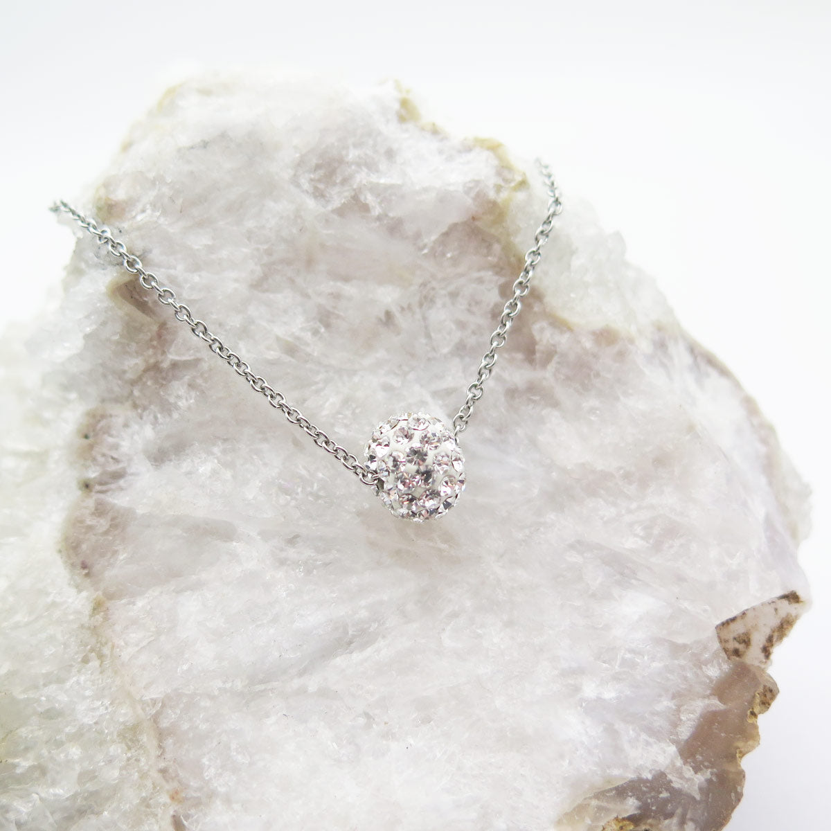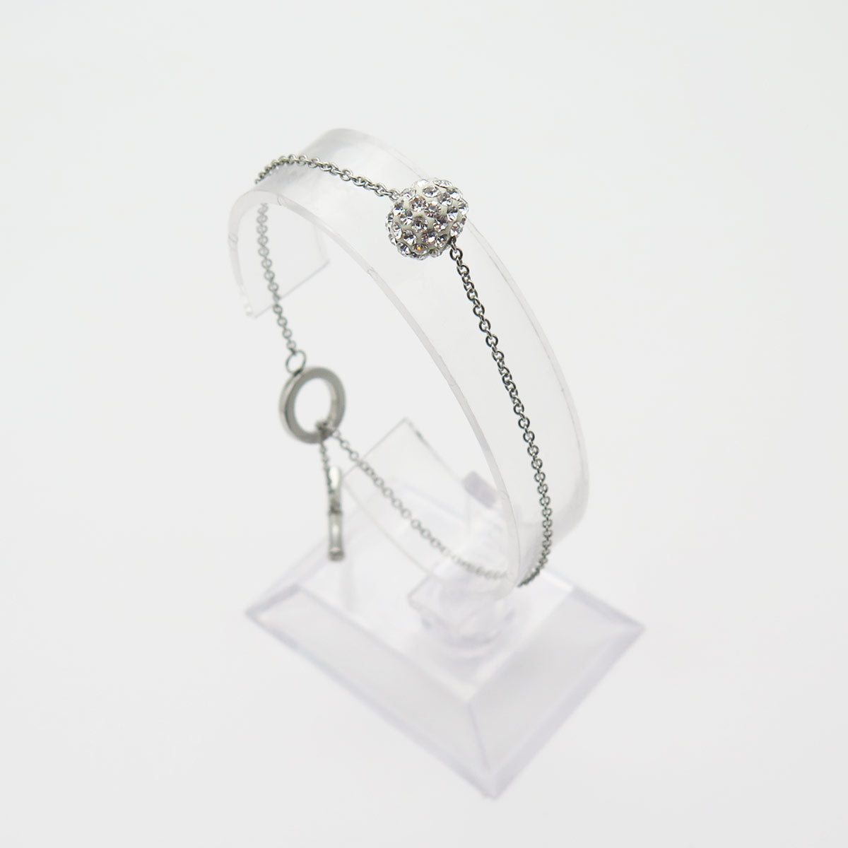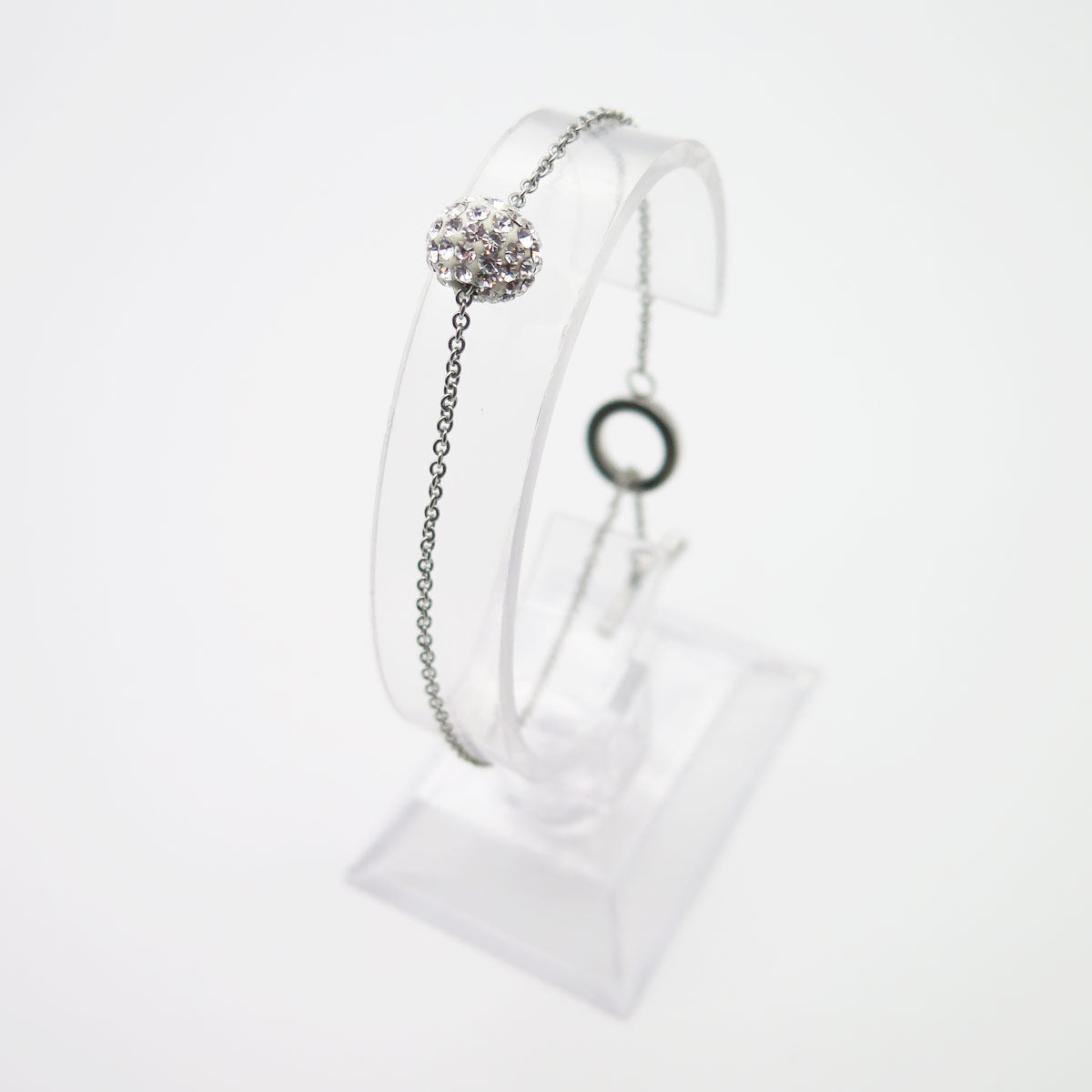 Este exclusivo brazalete de bolas facetadas en acero 316L con cristales de Swarovski tiene delicadeza y elegancia. Sus pequeños cristales brillan y juegan con la luz para un efecto chic.