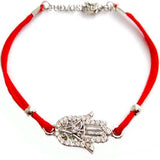 Es una pulsera Fil de Soie muy bonita y la Mano de Myriam la que estamos ofreciendo. Un Hamsa muy hermoso con incrustaciones de piedras CZ embellece esta joya muy de moda.