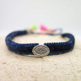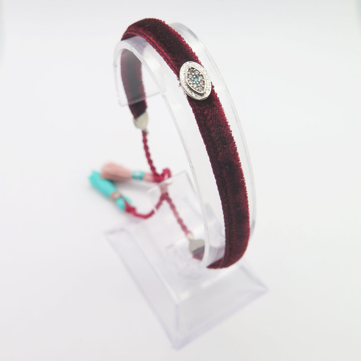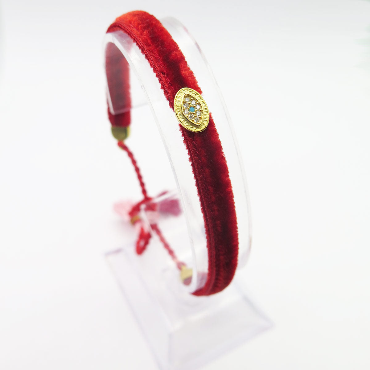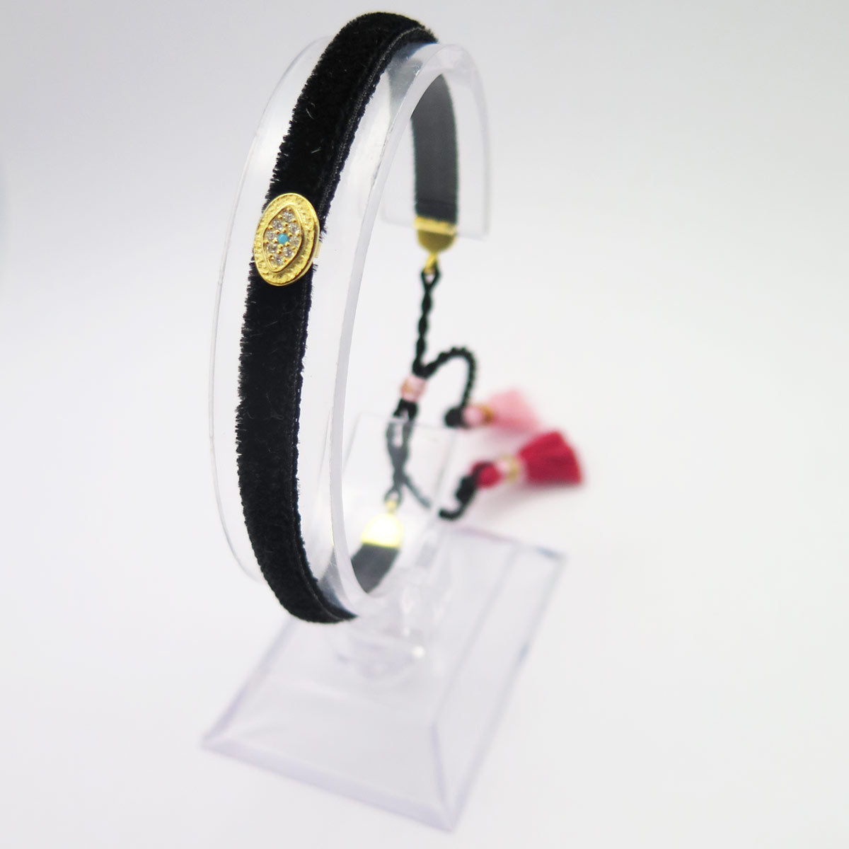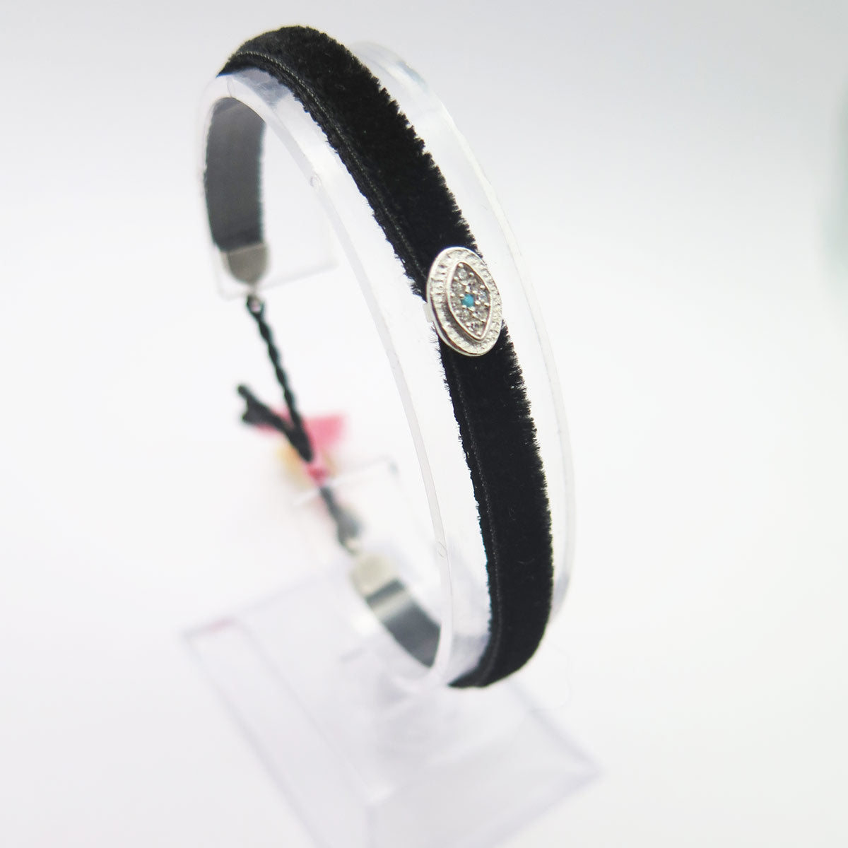 Pulsera de Terciopelo y su Ojo engastado con pequeñas piedras Cz