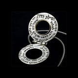 Esta joya judía única, hecha de plata esterlina, está delicadamente tallada y presenta la famosa oración Tefilat HaDerech. Este collar Tefilat Haderech se abre y viene con una cadena de plata. En el frente está grabado el salmo hebreo del capítulo 16 del libro de los Salmos: "Protégeme, Señor, porque en ti he puesto mi fe".
