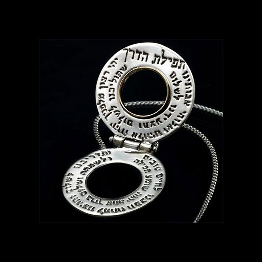 Dentro del colgante, Tefilat Haderesh (La oración del viajero) está grabado en hebreo. Tefilat HaDerech se recita antes del inicio de un viaje o de un viaje largo. En esta oración, el viajero pide la protección y salvaguarda de Dios.