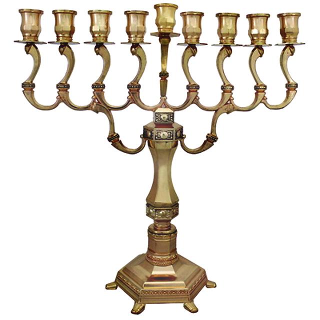 Esta Janukia que te ofrecemos en Metal Dorado con una decoración muy elegante, quedará genial en tu hogar. Precioso objeto de decoración durante el año, esta magnífica Hanoukia de 28 cm de altura, iluminará tu hogar durante las celebraciones de Hanukkah .