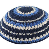 Kipá a crochet - Rayas 3 colores (blanco, marino y azul)