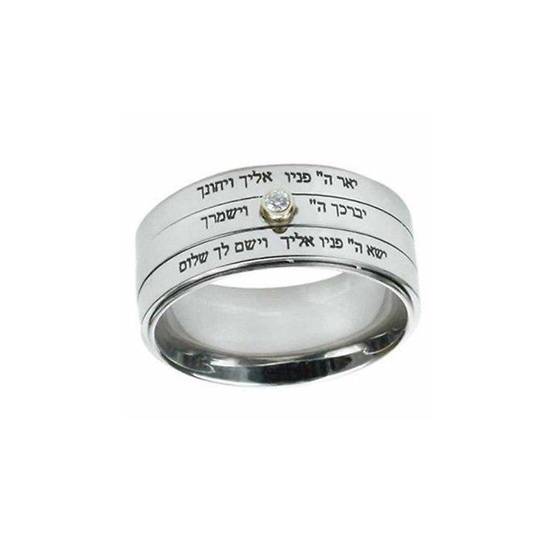 Cette superbe bague faite dans le meilleur acier existant, met en valeur la Bénédiction des Cohanim (Birkat Cohanim). Portez ces bénédictions partout où vous irez!