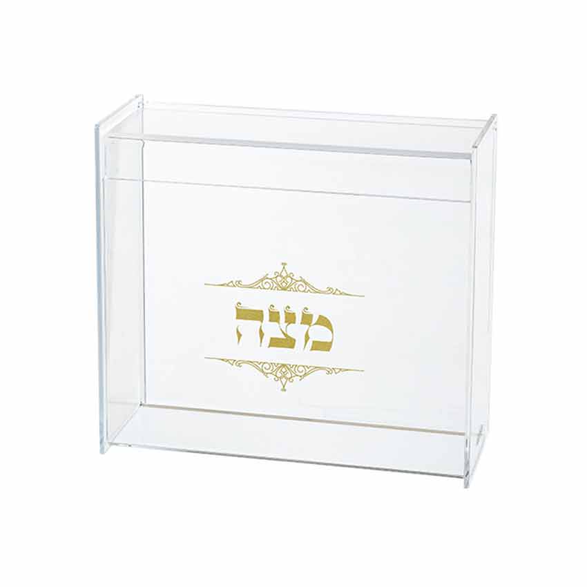 Vous allez apprécier cette Boite à Matsa en Plexiglas pour ranger vos matsot . Son écriture en lettres dorés lui donnera un air chic tout en décorant votre table du Seder de Pessah.