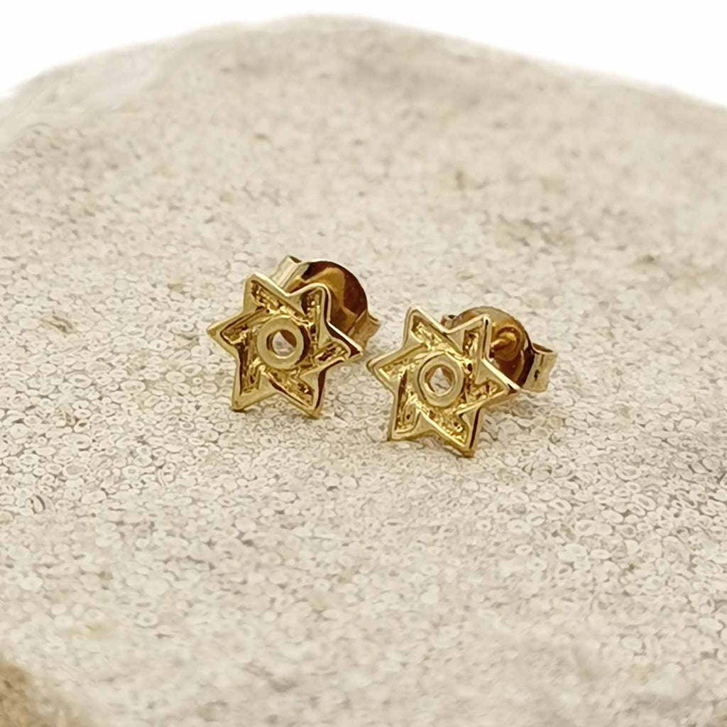 Ces jolies boucles d'oreilles en plaqué or représentent l'Etoile de David, symbole du judaïsme.