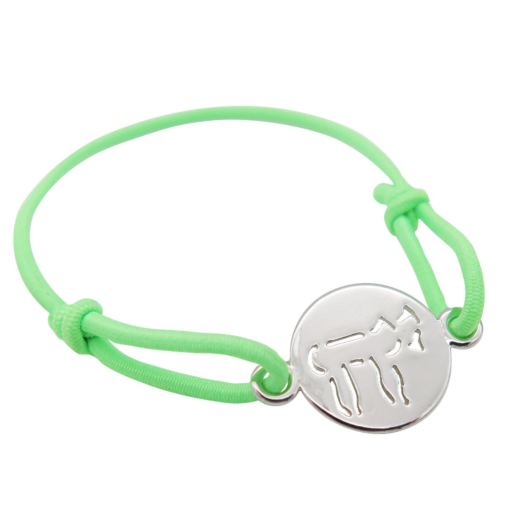 Ce Bracelet Chaï de couleur Vert Pomme très fashion, est monté sur un cordon élastique avec pour finition, des nœuds coulissants. Il s'adapte à toutes tailles de poignets.