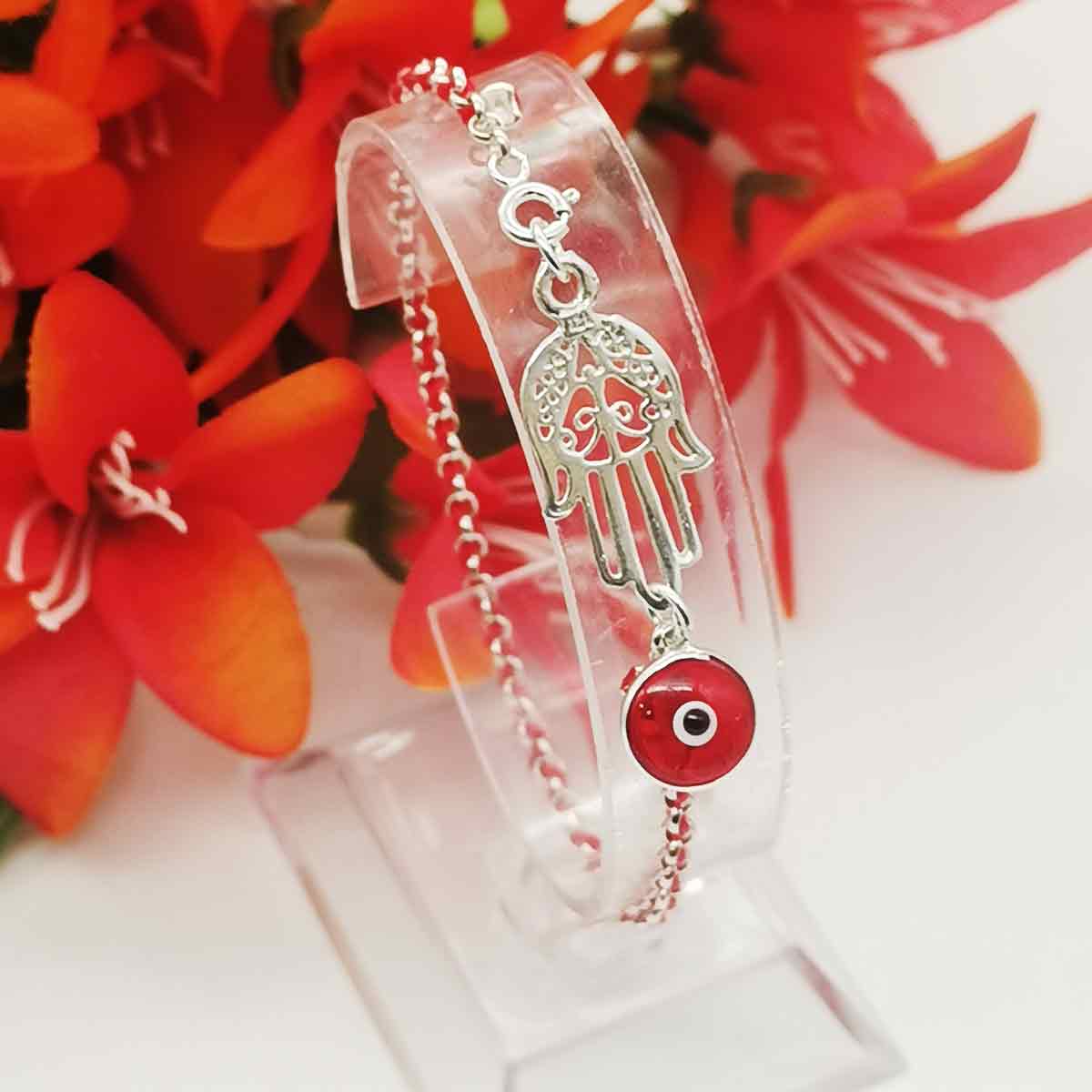 Ce bracelet accompagné d'une Main (Hamsa) et de son oeil, saura vous protéger contre le mauvais oeil tout en se montrant discret.