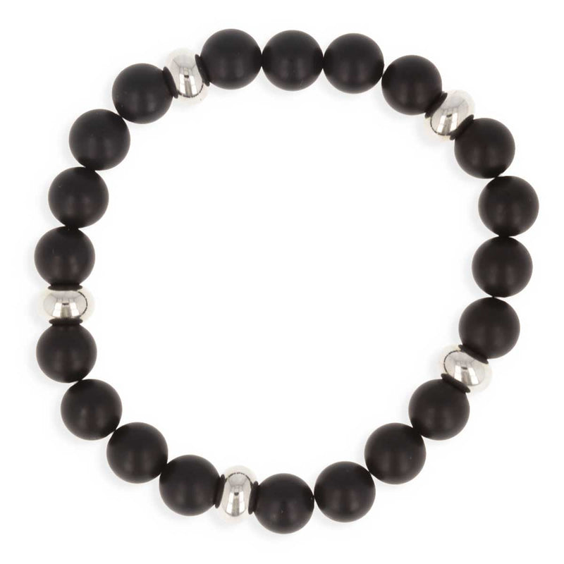 Ce joli bracelet mixte, monté sur un élastique pour poignets allant de 17 a 21 cm est orné de Pierres Naturelles Agates Noire Mat avec des séparations en acier. Il vous offrira bien plus qu'un accessoire de mode.