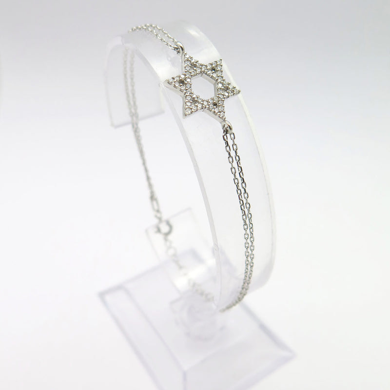 Ce bracelet élégant et sobre, avec sa chaîne en argent rhodié ou plaqué or et sa magnifique étoile de David ornée de zircones cubiques, apportera une touche chic à votre garde-robe et sera aussi un puissant symbole de protection.
