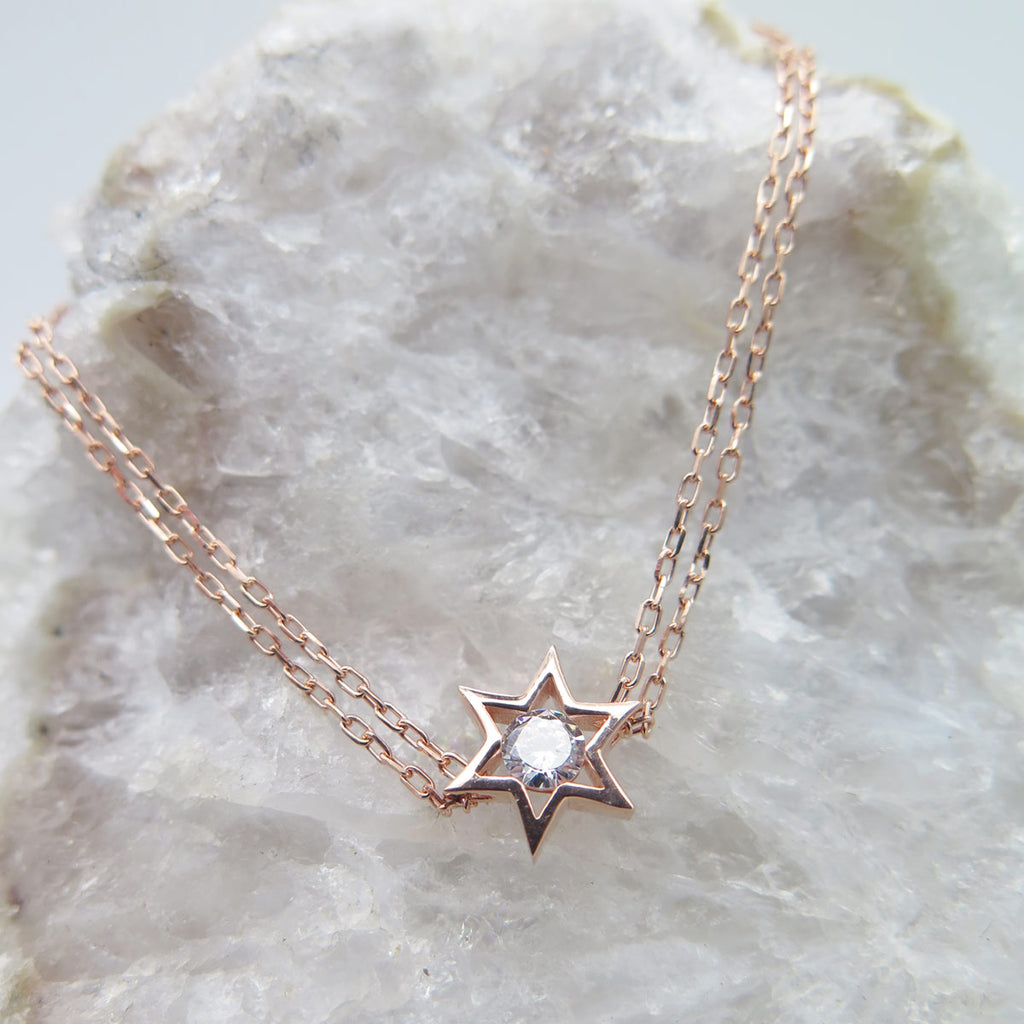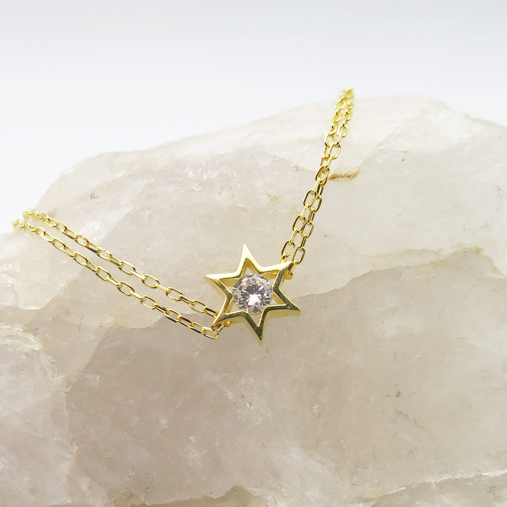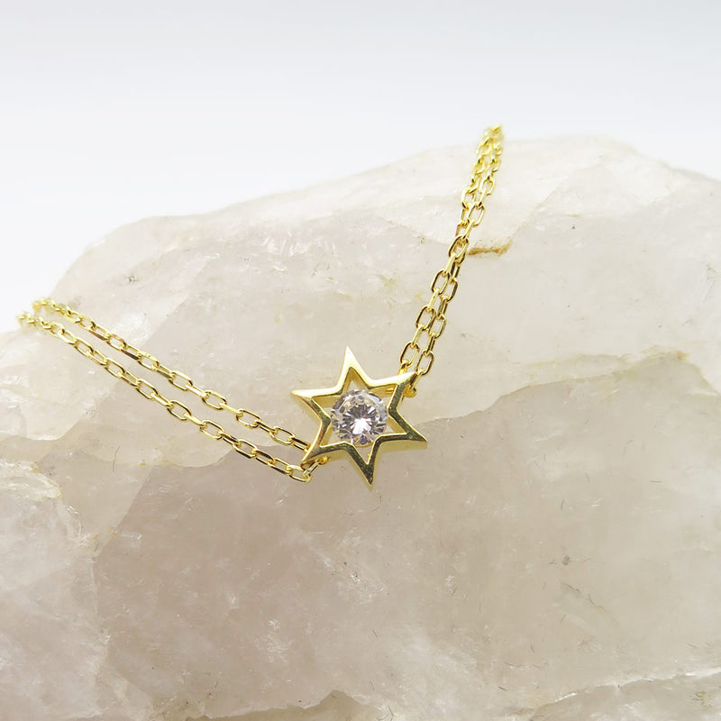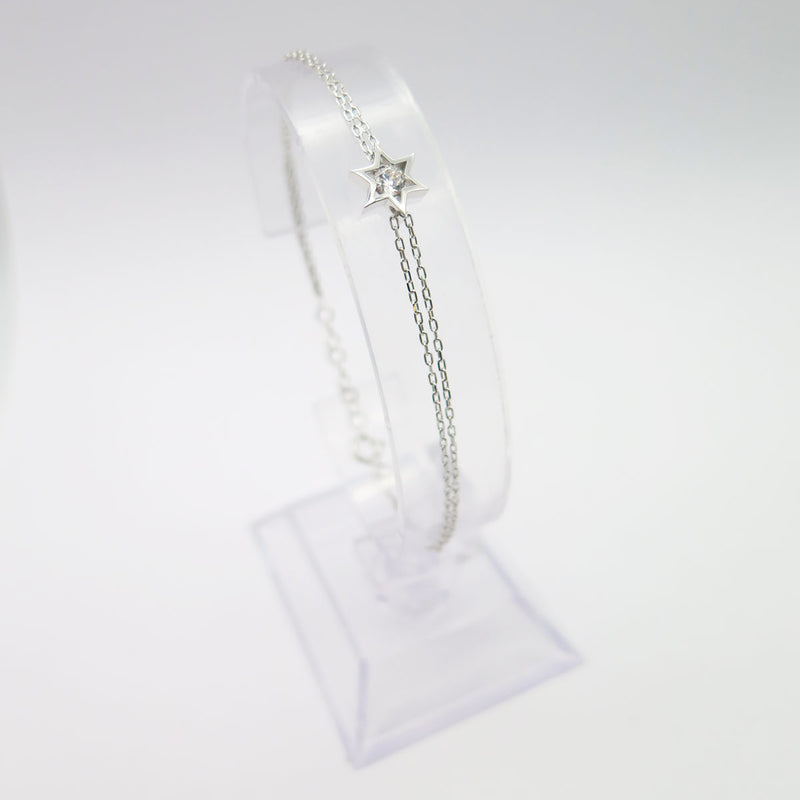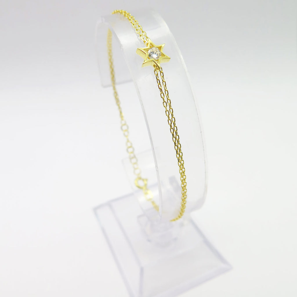 On ne résiste pas à ce bracelet Etoile de David double chaîne, incrusté d'un Cristal au centre. Chic et sobre, vous garderez longtemps ce bijou très tendance...