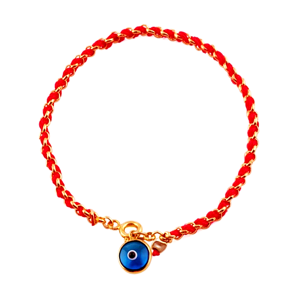 Bracelet fil rouge et or - Mauvais oeil bleu