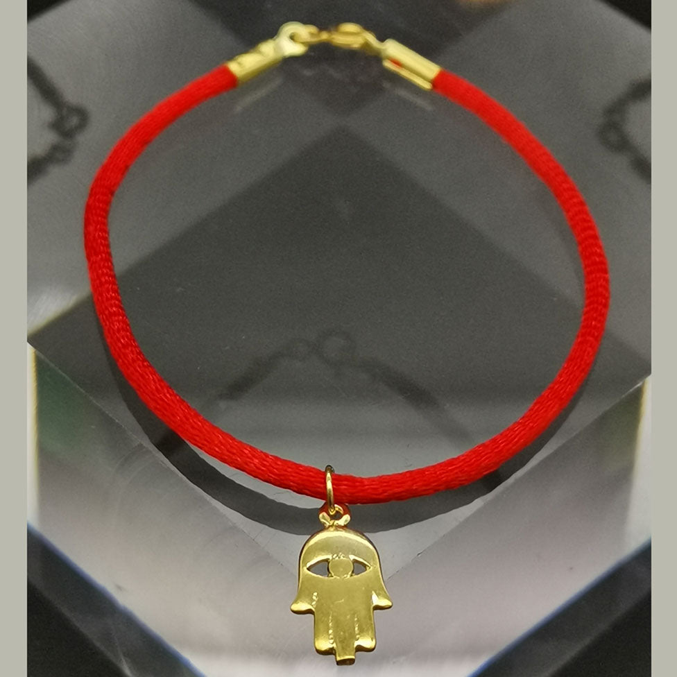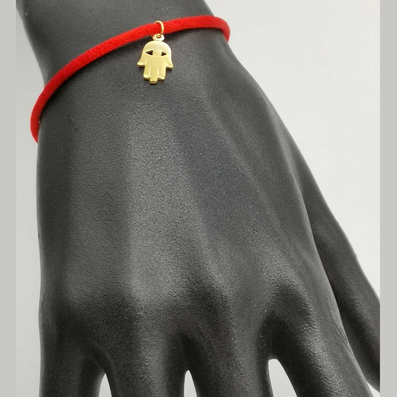 Ce Bracelet en Fil de soie Rouge accompagné d'une Main (Hamsa) en Plaquée Or saura vous protéger contre le mauvais œil tout en se montrant discret.