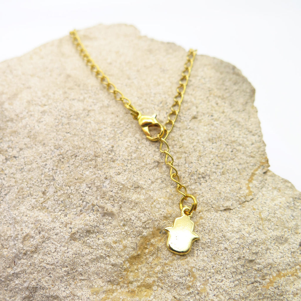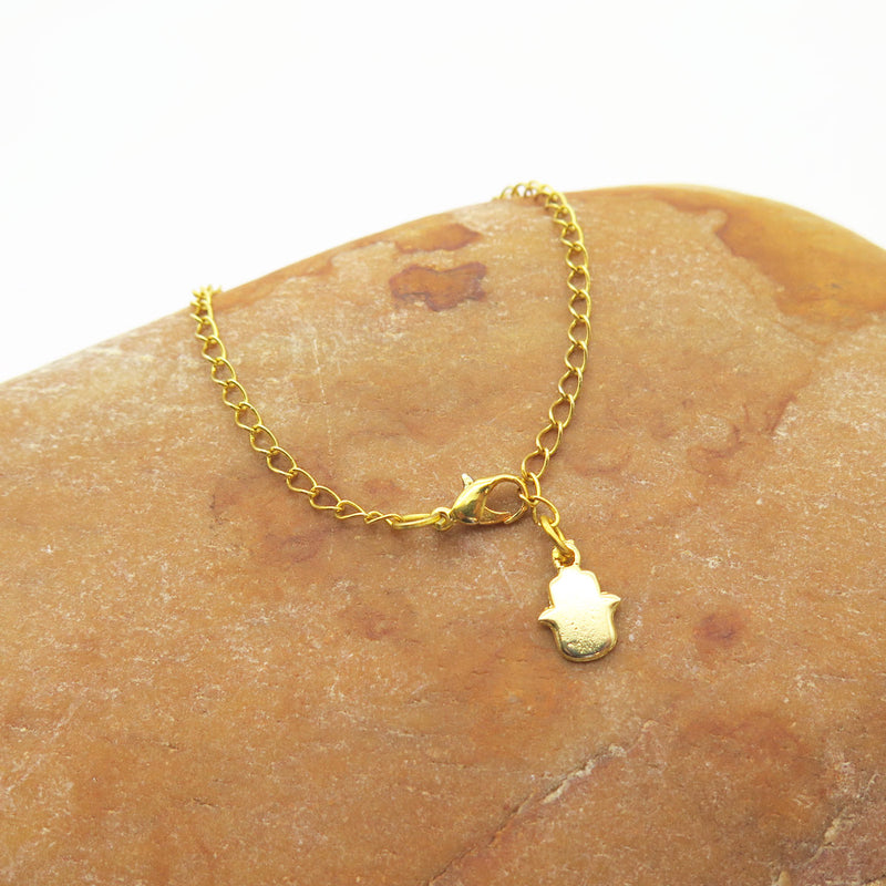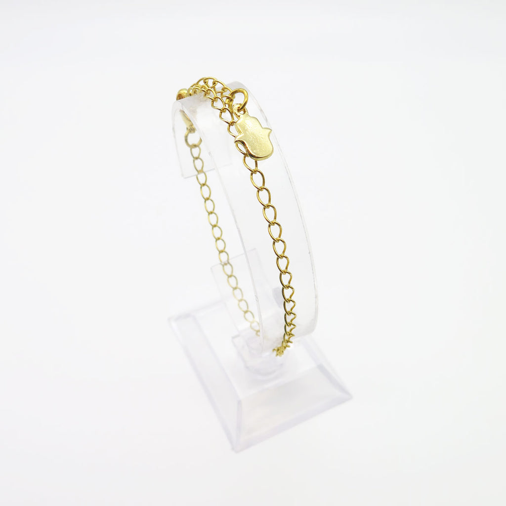 Ce bracelet doré accompagné d'une Main de Myriam (Hamsa) couleur or, saura vous protéger contre le mauvais œil tout en se montrant discret grâce à sa forme épurée.