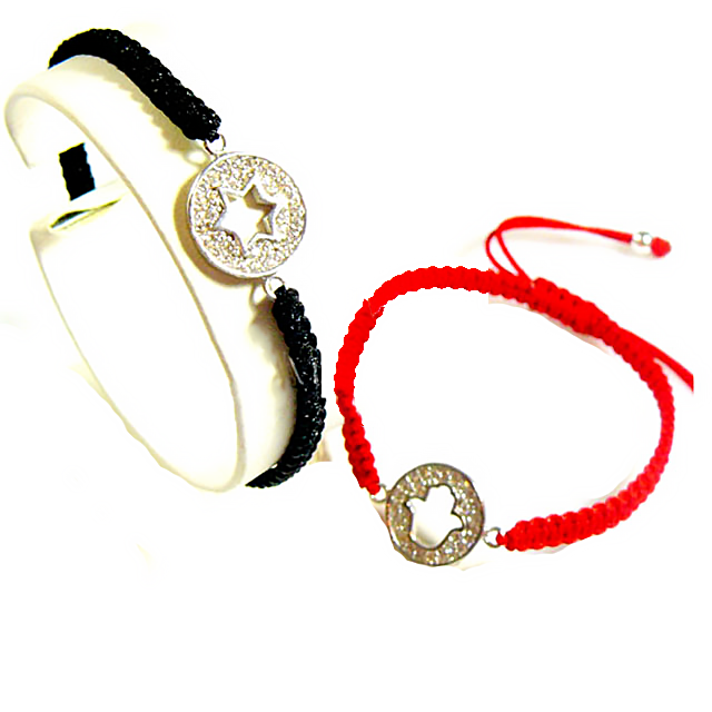 Accompagné d'un beau médaillon, où l'empreinte d'une Etoile de David ou d'une Hamsa incrustée de pierres CZ, vient embellir ce bijou très tendance. La fermeture se fait par un lien coulissant.