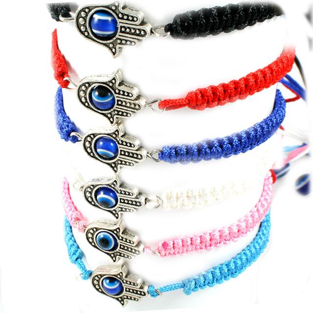 Ce bracelet décliné en 7 couleurs, accompagné d'une Main et d'un oeil tournant (Hamsa), saura vous protéger contre le mauvais oeil tout en se montrant discret.