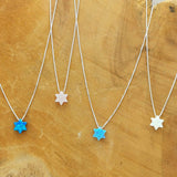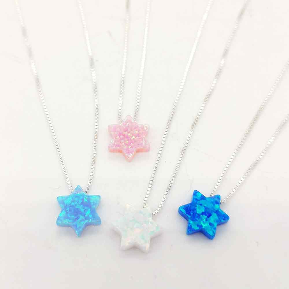 Ce très joli Collier Etoile de David Opaline et sa chaine d'Argent est un bijou que vous aurez plaisir à porter. Très léger et d'une allure très estivale, cette Etoile de David se décline en 4 couleurs : Bleue ciel, Blanche, Rose et Bleue turquoise.