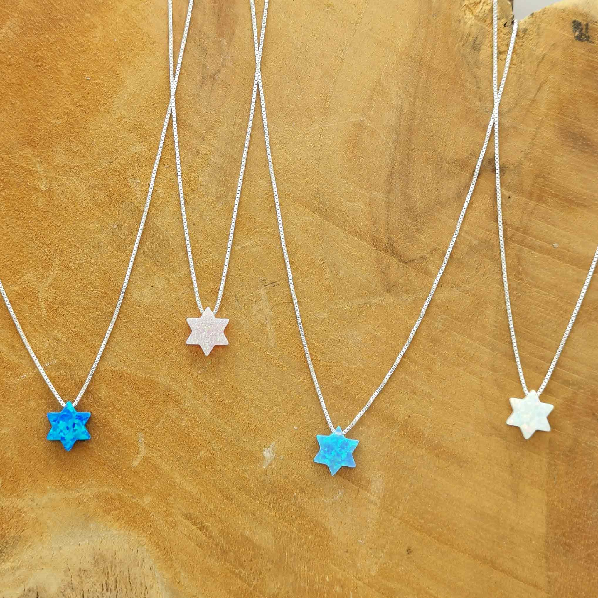 Collier Etoile de David Opaline et sa chaine d'Argent