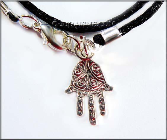 Le symbole du médaillon Hamsa est connu dans les sociétés islamiques en tant que Main de Fatima ; et on l’appelle la Main de Myriam ou Main de Hamesh dans la tradition juive (Hamesh est le chiffre cinq en hébreu). Dans la kabbale cinq est le chiffre qui se rapporte à la lettre hébraïque pour nommer Di.. . Il symbolise la main protectrice du créateur.