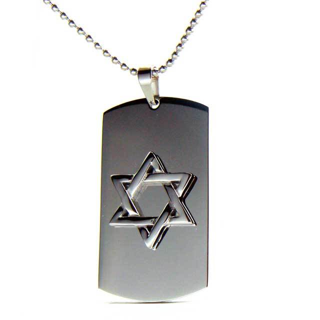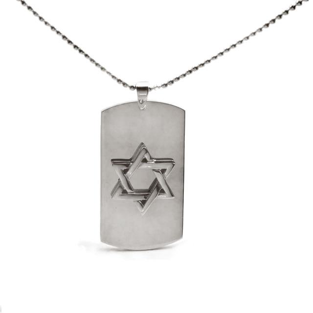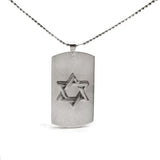 Craquez pour ce magnifique collier façon plaque militaire avec une Etoile de David sur sa plaque façon militaire, en acier inoxydable.