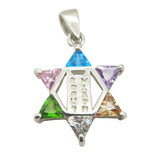 Pendentif Etoile de David et ses cristaux multicolores - Argent 925
