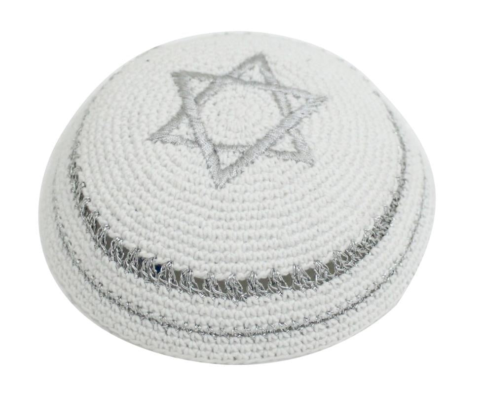 Kippa au crochet - Blanche Ajourée et Etoile de David d'argent