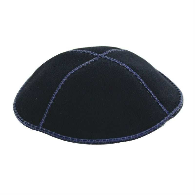 Jolie kippa en daim et cuir de couleur bleu marine, au style minimaliste. Cette kippa pourra vous accompagner aussi bien lors de vos événements à la synagogue, ou pour une fête de Shabbat en famille.