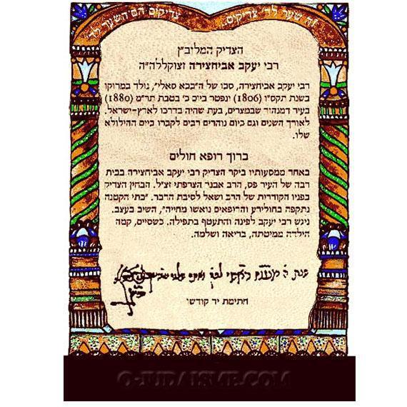 Le Rabbin Yaacov Abuchatzeira était un kabbaliste réputé pour sa piété et habitué à l'exécution des miracles. Il était un maître de la charité et son domicile était largement ouvert aux invités.