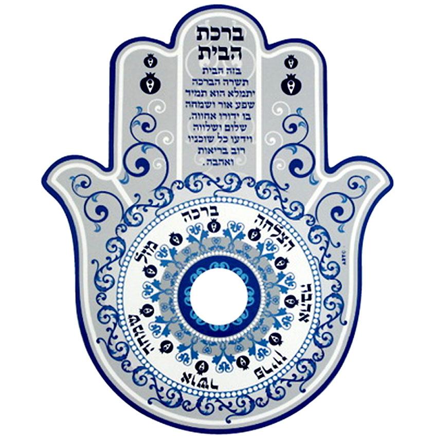 Magnet en matière plastique comportant la bénédiction pour votre foyer, le Birkat Habayïte.Dans la paume de la main se trouvent les 7 bénédictions.