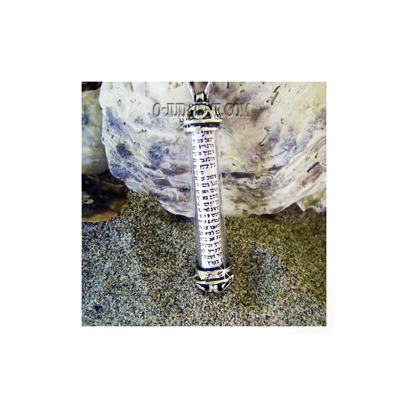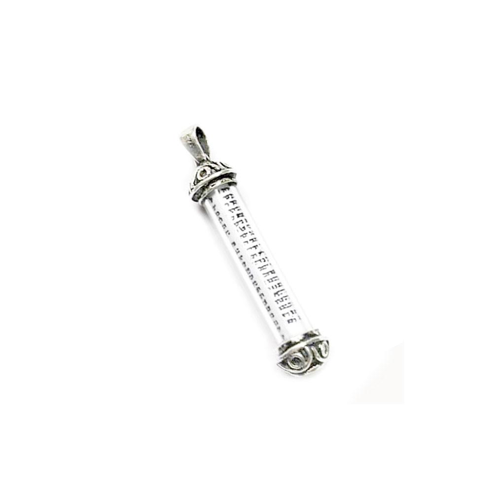Tout en longueur et en finesse, ce très beau Pendentif Mezouzah Verre et Argent, entièrement transparent, tel un écrin de verre, saura vous transmettre toutes les bénédictions inscrites sur son parchemin.
