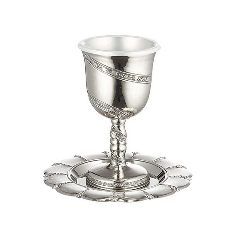 Verre à kiddouch - Ruban accompagné de sa soucoupe en nickel argenté. Sa qualité est irréprochable en termes de longévité et de facilité d’entretien.